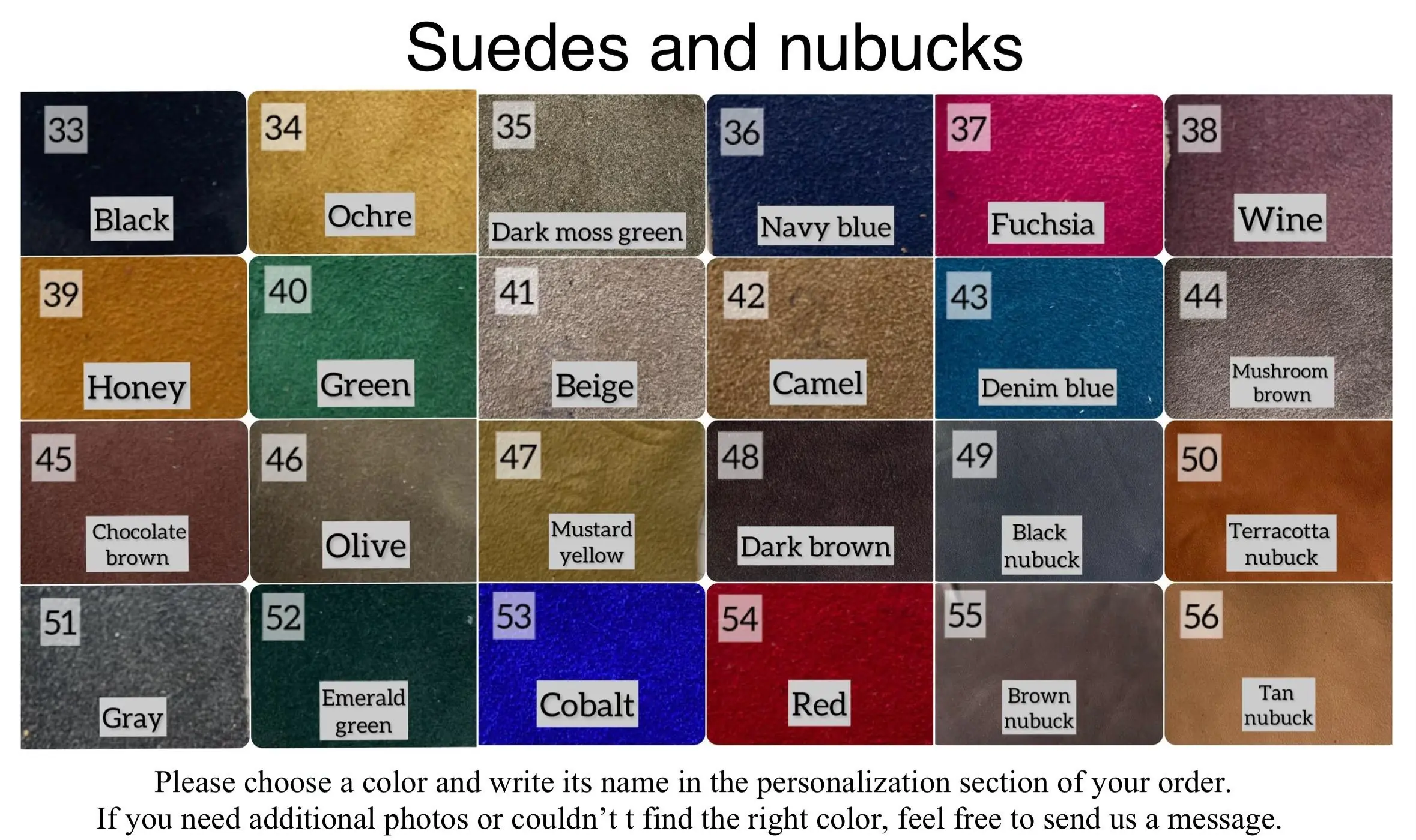 4. Fits true to size for the US. 5. You can order these shoes in other colors by filling out the “Personalization” field. See our Material Palettes on this page: 6. This sole is medium/regular width (B), but you can order shoes with slightly increased width by writing the phrase “large width” in the “Personalization” field. * PERSONALIZATION: If you have found a leather number you like in the material palette, place your order and write that number and all of your preferences in the Personalization tab. We will definitely contact you to clarify the details of the custom order. Personalization is FREE. In this item: